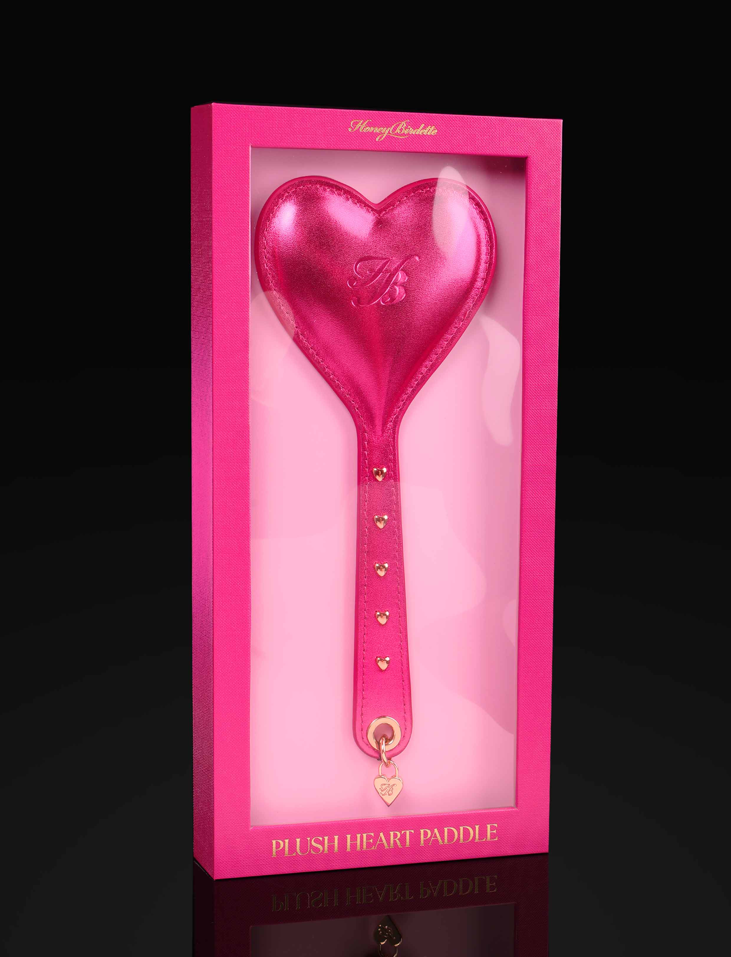 Give it to me heart. Made with premium leather and plush padding, this cushioned heart paddle will have hearts racing. Choose between soft suede or shiny leather. It’s double the play and twice the pleasure. Tease with the suede to build anticipation, then flip to the leather and leave them blushing…